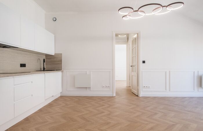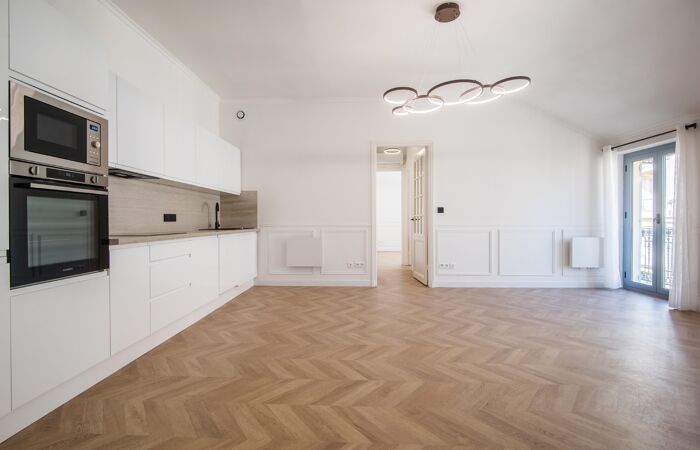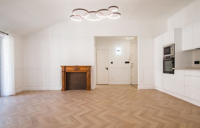 Entièrement rénové avec des prestations haut de gamme, ce bien légèrement mansardé se compose d'un hall d'entrée, d'un séjour de 26 m² avec cuisine ouverte et d'un balcon, de trois chambres dont une avec un balcon avec aperçu mer latéral, d'une salle d'eau et d'un WC séparé.