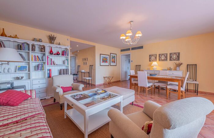 Le séjour double s'ouvre sur un grande terrasse vue mer grâce à 2 baies à galandage. Espace piscine 10x4.5m avec douche et wc et un coin terrasse couverte.