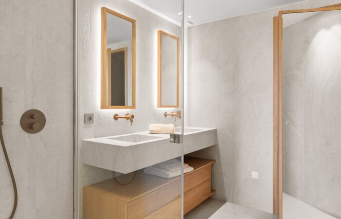 D'une superficie de 315 m² (Loi Carrez) et exposée plein sud, la propriété offre un cadre de vie exclusif. Elle comprend quatre chambres en suite, une salle de télévision, ainsi qu'un espace fitness entièrement équipé. Rénovée avec goût par une architecte, elle se distingue par ses prestations haut de gamme, ses volumes généreux et ses aménagements sur mesure, à l'image de son vaste séjour de plus de 110 m².