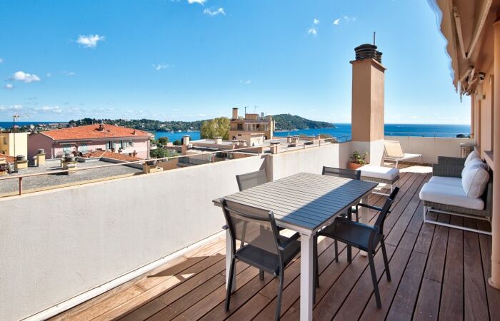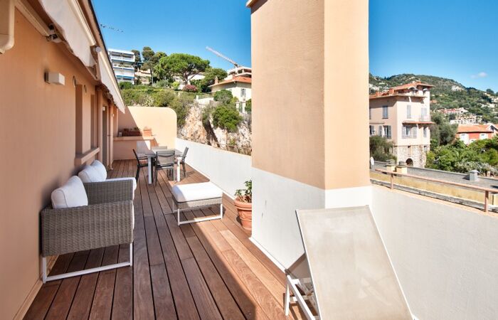 Superbe terrasse de 40 m² offrant une vue panoramique imprenable sur la mer et la presqu'île de Saint-Jean-Cap-Ferrat