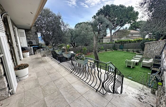 NICE RIMIEZ Dans splendide maison en pierre divisée en 4 appartements situé dans le quartier résidentiel de rimiez, avec accès indépendant situé au 1er étage pour ce somptueux 4 pièces 133 m² avec terrasse et jardin privatif de 240 m² environ Séjour salle à manger avec cuisine américaine équipée de 54 m² avec climatisation intégrée , 3 chambres climatisées en suite parentale avec salle de bains dressings et salles d'eau,2 toilettes, jardin en contrebas 250 m²environ non constructible avec 2 parkings extérieurs privé dans villa sécurisée. Pour toutes demandes d'informations et visite, merci de contacter Philippe ZERBIB au +33611514271