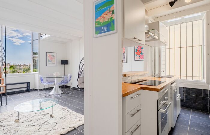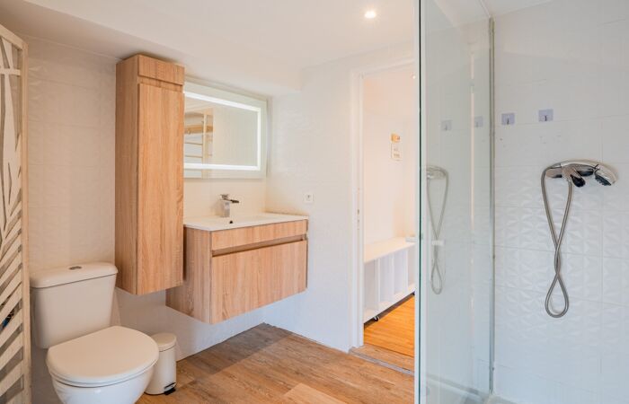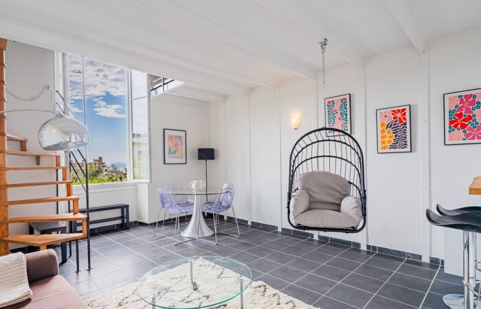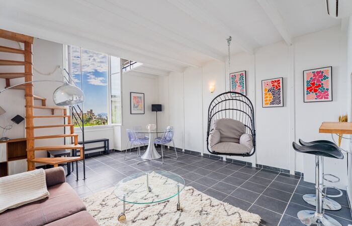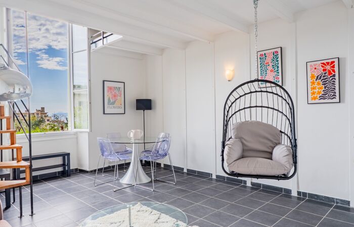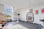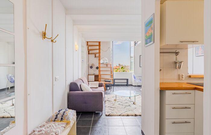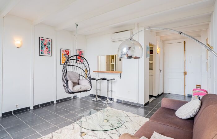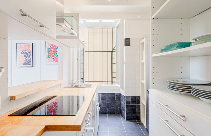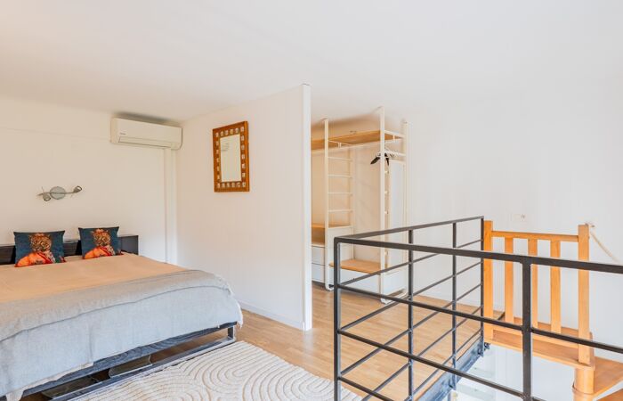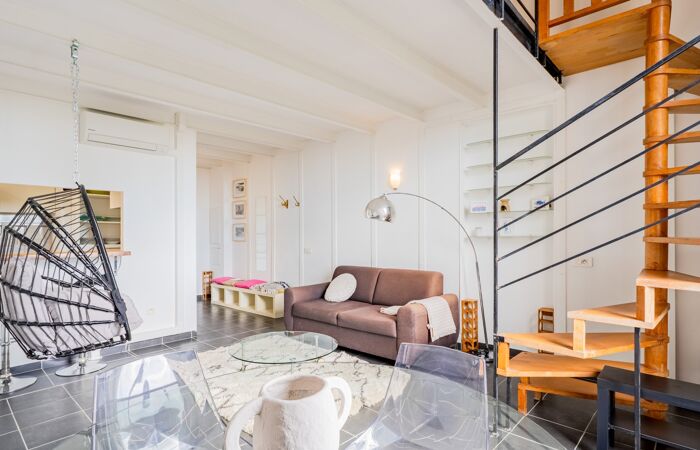 Superbe 2 pièces en duplex de 58 m², situé en rez-de-chaussée surélevé d'un hôtel particulier. L'appartement se compose d'un grand séjour très lumineux avec cuisine ouverte entièrement équipée plus wc indépendant .