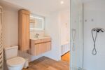 À l'étage, vous trouverez une grande chambre avec penderie et une salle de douche avec wc.