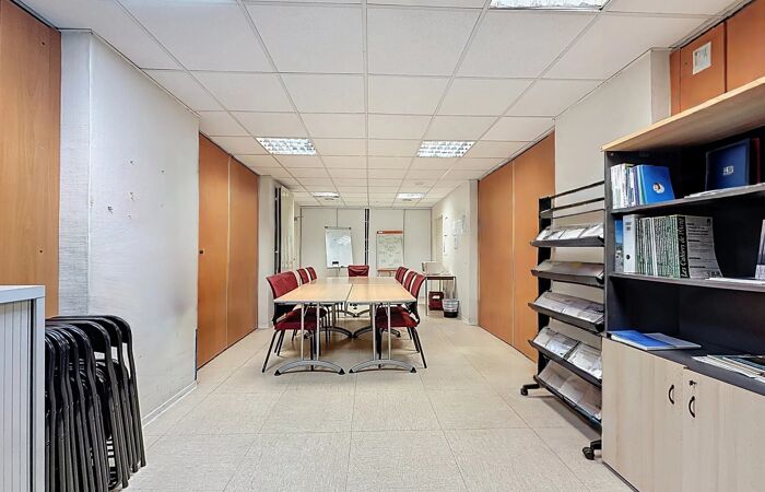 Le bien dispose d’un agencement fonctionnel comprenant un accueil, 15 bureaux vitrés fermés, deux grandes salles de réunion, une grande salle d’activité avec espace repas ainsi que des sanitaires avec trois toilettes.