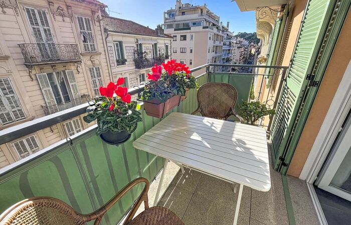 VENTE Appartement 2P Nice République Balcon Vue Etage Elevé Superbe! VENTE APPARTEMENT 2P 40M2 NICE RÉPUBLIQUE BALCON VUE DÉGAGÉE ÉTAGE ELEVÉ SUPERBE! Au cœur du quartier République à Nice, rue Ribotti, au 5ème et avant dernier étage dans un immeuble de 2013 avec ascenseur. Cet appartement lumineux de 40,13 m² est une véritable perle rare. Idéal pour un couple ou une personne seule. Très bien agencé, il offre un hall d'entrée et un séjour qui s'ouvre sur un balcon ensoleillé avec vue sur le charmant quartier niçois. La cuisine est moderne et bien équipée, offrant un espace fonctionnel et agréable pour cuisiner. Ensuite une belle chambre avec des placards et une salle de douche avec wc. L'appartement est équipée climatisation pour votre confort ainsi que des fenêtres du double vitrage en PVC pour une isolation optimale. L'immeuble est bien sécurisé avec la vidéosurveillance et un vidéophone. Proche des commerces, restaurants, du Tramway, Place Garibaldi, Le Port, la vielle ville et le Parc Coulée Verte. Possible d'acheter une place de parking dans l'immeuble. Charges annuel: 1 768euros (soit 147euros par mois, inclus chauffage, eau chaud et froid) DPE: D Honoraires d'agences à la charge de vendeur. Selon de nos informations, pas de procédures en cours.