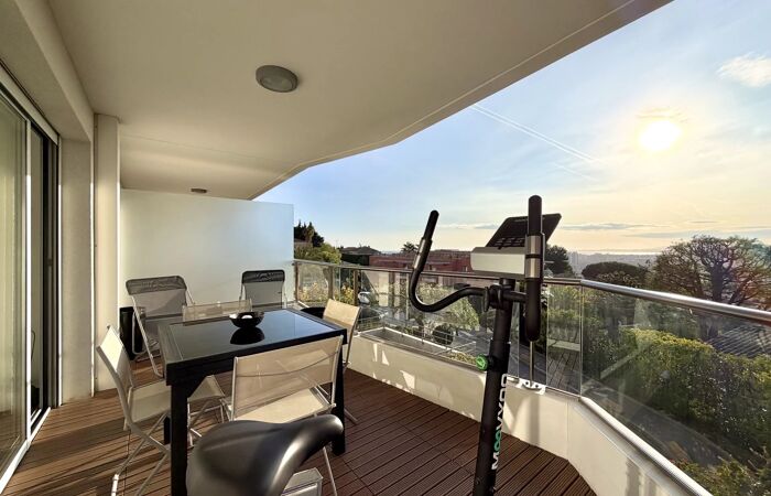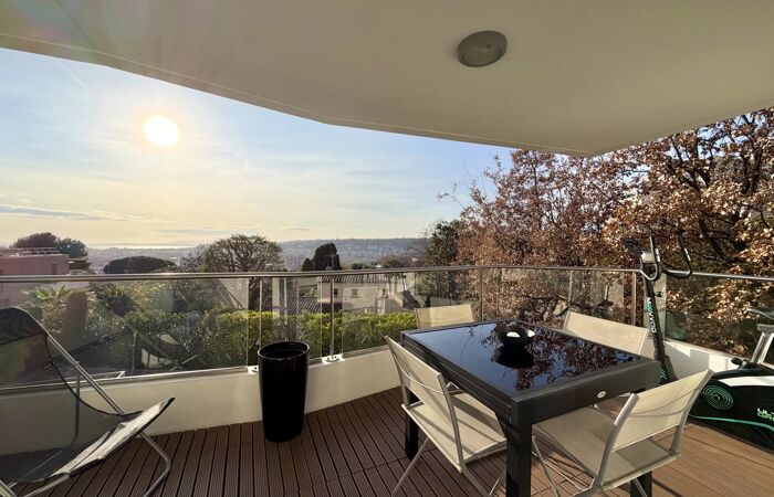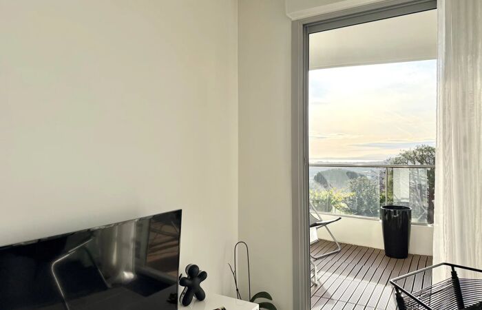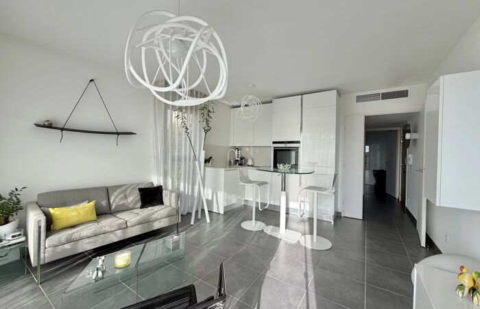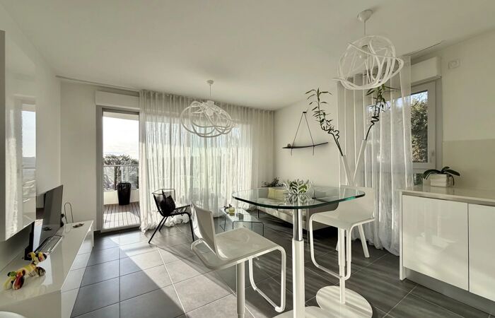 Nice Ouest - Corniche Fleurie A seulement 10min de l'aéroport international de Nice, nous vous invitons à venir découvrir ce magnifique appartement 2 pièces d'environ 40 m² situé au sein d'une résidence de haut standing construite en 2015 offrant des prestations haut de gamme avec piscine et espace verts soigneusement entretenus. Parfaitement agencé, l'appartement se compose d'une entrée, d'un séjour lumineux avec cuisine américaine entièrement équipée d'électroménager SIEMENS. Le séjour s'ouvre sur une magnifique terrasse en teck exposée plein SUD, offrant une superbe vue dégagée jusqu'à la mer sur le Cap d'Antibes. L'espace nuit comprend une grande chambre avec placards aménagés en dressing, ainsi qu'une salle de bain avec WC. Pour votre confort un garage sécurisé en sous-sol vient compléter l'appartement. Un bien rare, alliant modernité, confort et cadre de vie exceptionnel, idéal en résidence principale, secondaire ou pour un investissement de qualité. « Les informations sur les risques auxquels ce bien est exposé sont disponibles sur le site Géorisques : georisques.gouv.fr » Pour toutes demandes d'informations et visite, merci de contacter Manon ABATE au +33650454567