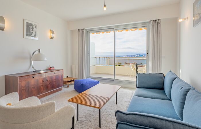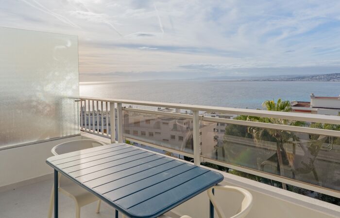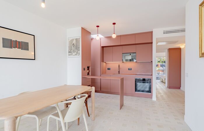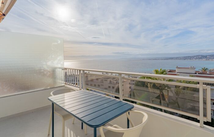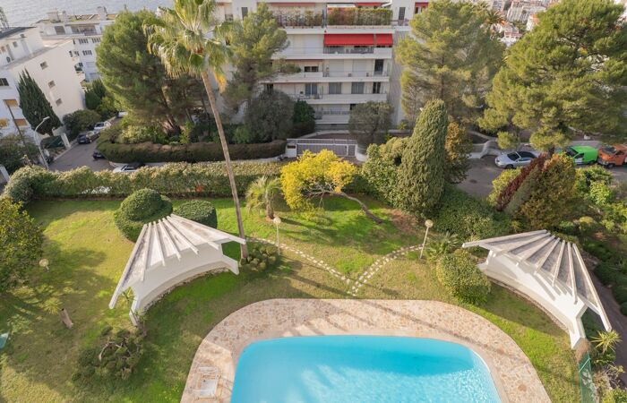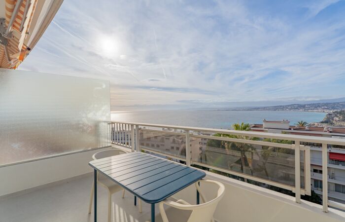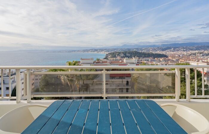 NICE - MONT BORON: Dans une résidence de grand standing avec piscine et gardien, 3 pièces en état neuf de 64.2 m² en dernier étage. L'appartement dispose d' une terrasse "ciel ouvert" avec une vue panoramique sur la ville et la mer. Il se compose d'une entrée, d'un séjour avec une cuisine américaine équipée, de 2 chambres, d'une salle de douche, d'un WC indépendant. Une cave et un garage viennent compléter ce bien!