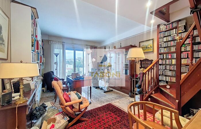FAC DE LETTRE 4/5 PIECES DUPLEX AV VUE MER ET VILLE (2x3PIECES) Fac de Lettres - Bd Edouard Herriot - Au sein d’une résidence fermée de standing avec parc, découvrez cet ensemble rare composé de deux 3 pièces(2lots) communicants, formant un duplex. Cet appartement à une surface totale de 144,91 m² Carrez, répartie sur deux niveaux, et bénéficie de larges extérieurs ainsi que d’une magnifique vue dégagée sur la ville et la mer. Premier niveau au 5eme étage: Entrée, double séjour de 34m² lumineux ouvrant sur une terrasse de 14m² exposée Ouest, cuisine indépendante, belle chambre avec placard intégré donnant sur balcon, salle de douche/ wc avec rangements, salle de bains avec WC et espaces de rangement. Second niveau au 4eme étage : Entrée, séjour ouvrant sur terrasse, cuisine indépendante, deux chambres avec accès extérieur, salle de douche avec WC, ainsi qu’un WC indépendant /coin buanderie. L’ensemble est équipé de double vitrage et de volets roulants électriques. Deux caves et un grand garage de 14.50m². Réf. - 800 000 euros honoraires exclus - Honoraires de 5%TTC à charge acquéreur - Nombre de lots dans la copropriété: 45 - Montant moyen de la quote-part de charges courantes 7 320 euros/an - Aucune procédure en cours (articles 29-1A/29-1 loi 65-557, L.615-6 du CCH) - Classe énergie 156 kWhEP/m².an (D) - Classe climat 34 kg CO2/m².an (D) - Montant estimé des dépenses annuelles d'énergie pour un usage standard, établi à partir des prix de l'énergie de l'année 2021 : 1868euros ~ 2528euros - Les informations sur les risques auxquels ce bien est exposé sont disponibles sur le site Géorisques : georisques.gouv.fr - TABONI TRANSACTIONS - Non-détention de fonds - SIRET 0040 - CPI 11342