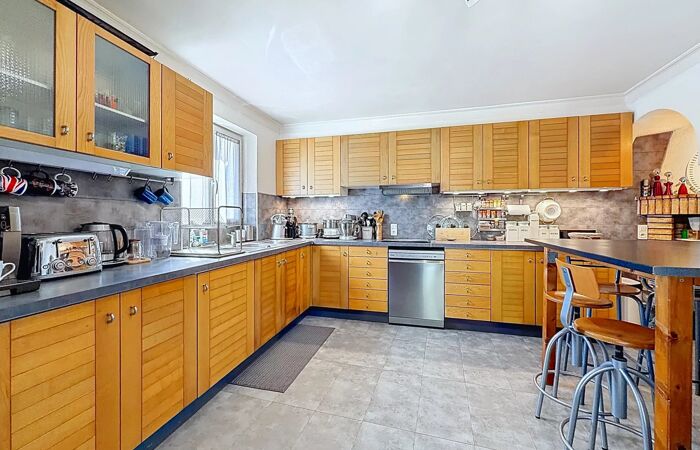 En entre-sol, une vaste cave de 60 m² et un atelier de 20 m² offrent de nombreuses possibilités de rangement ou d’aménagement selon vos besoins.