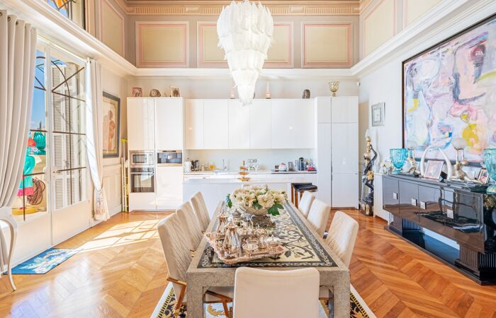 L'appartement bénéficie d'une triple exposition, offrant une belle luminosité tout au long de la journée, et d'une grande terrasse d'environ 100 m² avec vue dégagée.