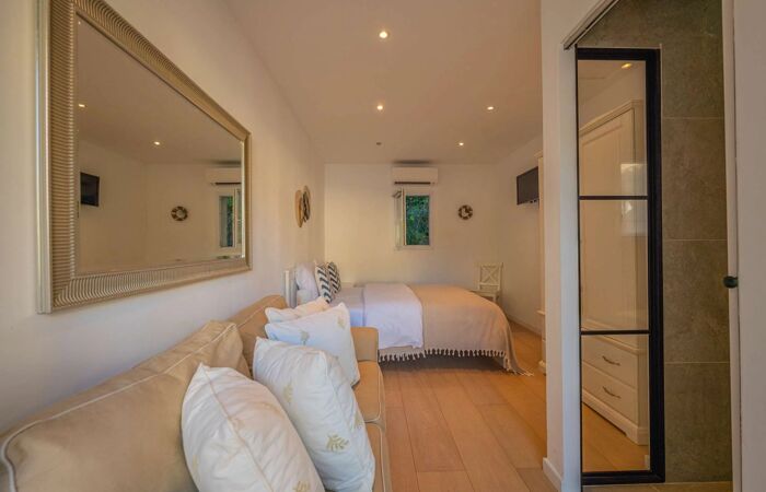 • Conçu à l’origine comme un vaste F1, la pièce principale a été intelligemment agencée par la propriétaire actuelle, pour créer un coin nuit avec rangements