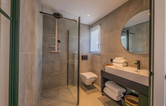 • Pour le reste, une petite entrée, une salle de douche avec wc, et un beau dressing aménagé