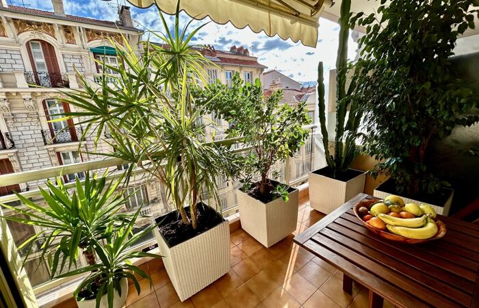 NICE QUARTIER LIBERATION Exclusivité ! A deux pas du marché de la Libération, de la gare du sud, à quelques mètres du tram et proche de toutes les commodités, superbe 2 pièces à vendre, dans une résidence de très bon standing avec gardien, entrée immeuble et ravalement récent. En étage élevé avec ascenseur, cet appartement de 47.50m² se compose d'une entrée avec vestibule, d'un séjour donnant sur terrasse de 6m, d'une chambre avec placard et d'une cuisine indépendante équipée tous deux donnant sur une véranda de 5.5m, de toilettes indépendantes, d'une salle d'eau équipée avec douche à l'italienne. belles prestations, stores extérieurs électriques, volets roulants électriques, climatisation réversible, faux plafonds avec éclairage incorporé. Il bénéficie d'une cave et emplacement deux roues.