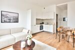 L'appartement se compose d'une belle pièce à vivre avec la cuisine américaine aménagée et équipée, de 2 chambres avec chacune sa salle d'eau, un toilette séparé.