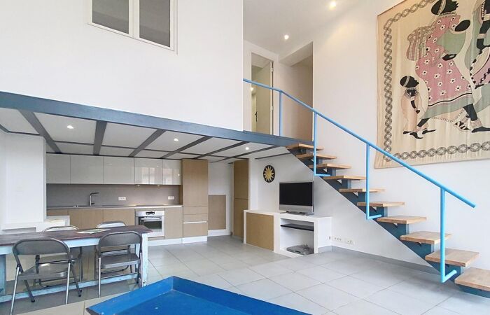 Nous vous proposons cet appartement meublé de 51 m² en duplex, composé d'un séjour donnant sur une terrasse avec une cuisine ouverte aménagée et équipée, une chambre et une salle d'eau avec WC. Il se trouve à proximité des commerces et des axes principaux tout en étant au calme, avec vue sur la verdure.