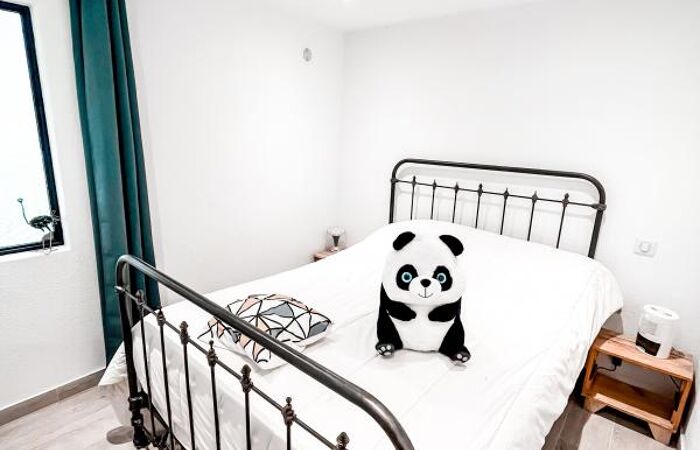 Au 1er niveau, une grande pièce à vivre avec baie vitrée offrant une vue sur la ville, 2 grandes chambres dont une avec salle d'eau, une grande cuisine séparée équipée, une grande salle d'eau avec WC.