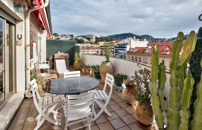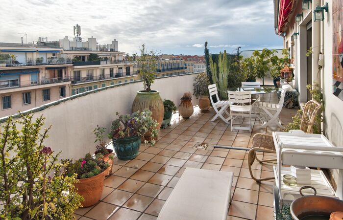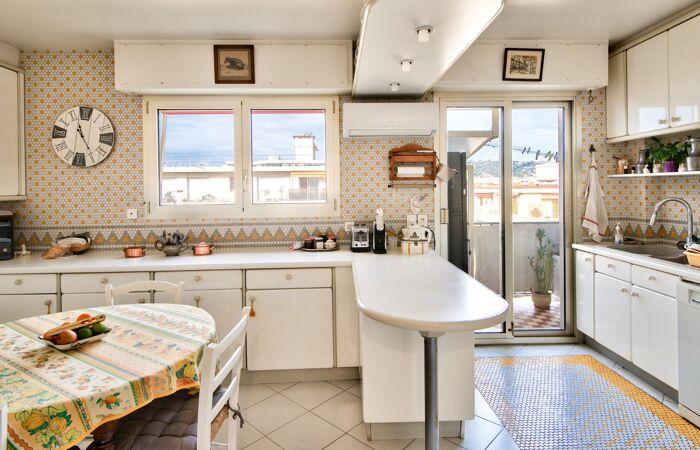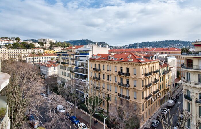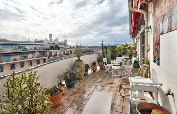 NICE : Boulevard Dubouchage en dernier étage plein Sud, appartement de 130m2 avec terrasse ensoleillée de 40m². Vendu en Nue-propriété sur une tête (Monsieur, né en 1929 / 97 ans) un investissement sur un bien recherché avec une adresse premium en plein cœur du centre-ville. A quelques minutes à pied de Nice Etoile et de la place Massena, bénéficiant d'une vue splendide. Hall d'entrée qui dessert un très grand salon donnant sur la terrasse. Grande cuisine indépendante, deux chambres, une salle d'eau et un WC.