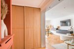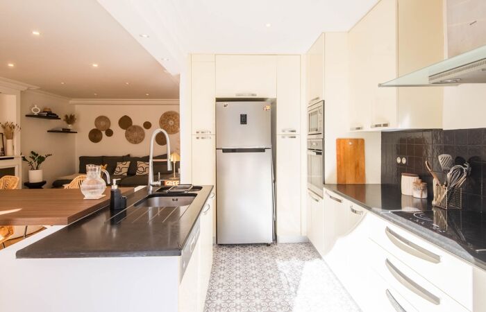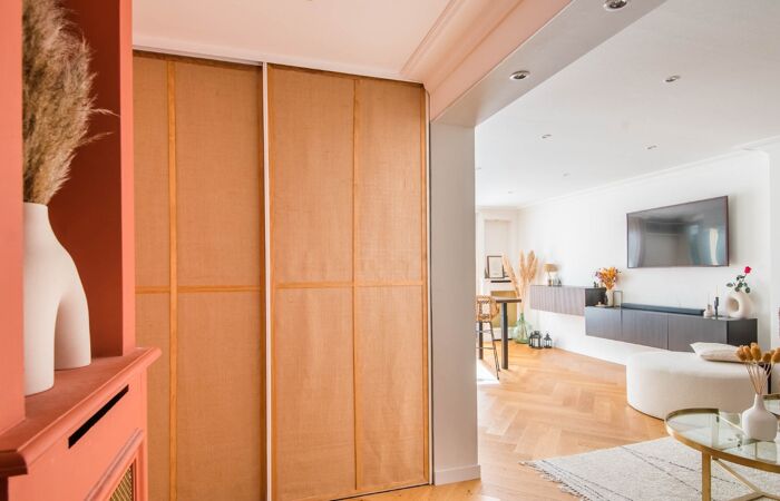 Rénové en 2021 avec des prestations haut de gamme, cet appartement dispose d'une cuisine ouverte entièrement équipée, d'une chambre de 14 m² avec dressing sur mesure et bureau intégré et d'une salle de bain avec large cabine de douche.