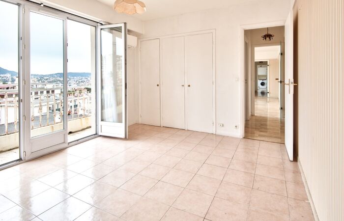 Situé dans le quartier très recherché de Nice Nord, au dernier étage (5/5) d'une résidence bien entretenue et au calme, découvrez ce superbe appartement de 68 m². Actuellement configuré en 2 pièces et entièrement à rénover il peut facilement être transformé en 3 pièces, grâce à une distribution optimisée. Il se compose d'une entrée avec de grands rangements, d'un séjour lumineux de 25 m² et d'une cuisine indépendante ouvrant sur la terrasse principale, d'une très grande chambre donnant sur un balcon privatif, d'une salle de bain avec wc et d'un wc indépendant. Entièrement climatisé, l'appartement bénéficie d'une luminosité exceptionnelle et d'une vue panoramique sur les toits de la ville, le château et la mer .