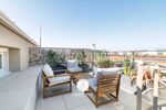 Une entrée ouvrant sur un séjour cathédrale avec cuisine ouverte entièrement équipée, donnant accès à une terrasse de 11m² amenant à un second espace extérieur. Un rooftop de 25 m² avec vue sur la ville de Nice.