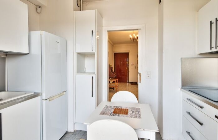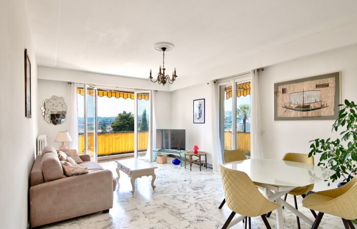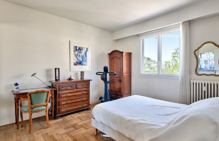 Proche commerces et commodités, appartement de type 3 pièces de 87 m², situé en étage élevé d'une résidence bien entretenue avec ascenseur. L'appartement offre une très belle vue dégagée jusqu'à la mer, depuis une grande terrasse d'angle de 26 m² exposée sud-ouest.