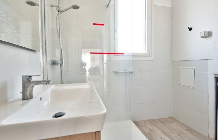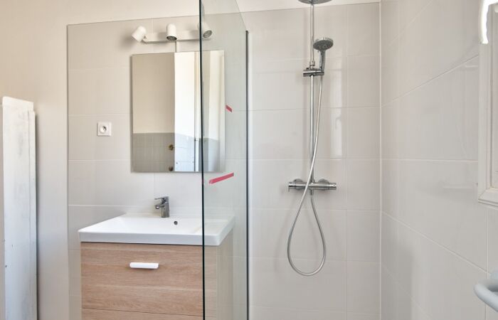 Il se compose d'un séjour lumineux, d'une cuisine indépendante, de deux chambres (dont une avec salle d'eau privative), d'une seconde salle d'eau, de WC séparés et d'une entrée avec de nombreux rangements.