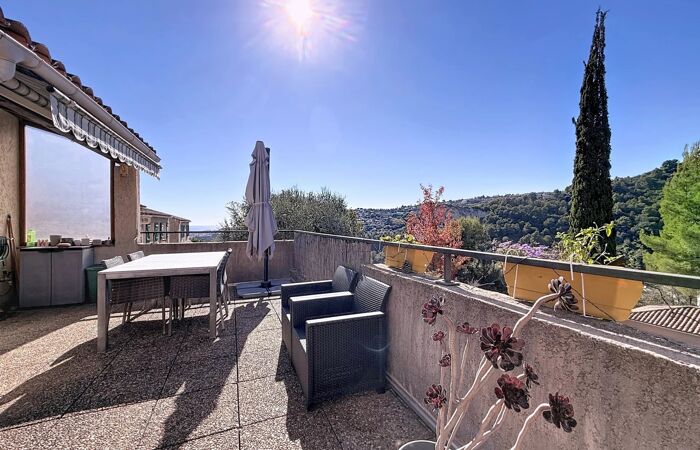 Colline de l'Abadie - Appartement/Villa de 3 pièces avec terrasse et parking privatif L'Abadie - Chemin des Arnaud Dans un petit hameau paisible, à seulement 5 minutes de l’autoroute A8 et 10 minutes de Nice en voiture, découvrez ce superbe appartement-villa 3 pièces de 63 m², en excellent état, réparti sur deux niveaux, offrant un cadre de vie serein, comme à la campagne, tout en restant proche de toutes les commodités. Au rez-de-chaussée, vous trouverez une belle pièce de vie de 33 m² avec cuisine ouverte, baignée de lumière, ouvrant sur une grande terrasse ensoleillée avec une magnifique vue dégagée, sans vis-à-vis, sur la verdure et les collines environnantes, ainsi qu’un WC indépendant. À l’étage, deux chambres confortables et une salle de bains. Traversant Est/Ouest, l’appartement bénéficie d’une luminosité optimale tout au long de la journée, de nombreux rangements et d’un environnement particulièrement calme. Ce bien, à vivre comme une maison, dispose également d’un stationnement privatif. « Les informations sur les risques auxquels ce bien est exposé sont disponibles sur le site Géorisques : georisques.gouv.fr. » Pour toutes demandes d'informations et visite, merci de contacter Severine FERRAND au +33662180723