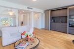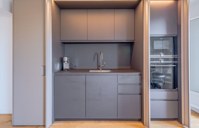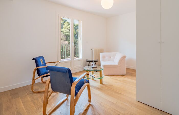 Il se compose d'un séjour très lumineux aux volumes généreux, avec cuisine américaine sur mesure entièrement aménagée et équipée, ouvrant sur une profonde terrasse exposée Est et offrant une vue à couper le souffle.