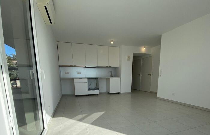 L'appartement se compose d'une entrée, un séjour avec la cuisine américaine aménagée et équipée, 2 chambres, une salle de bains, un toilette séparé. Grande terrasse de 30 m².