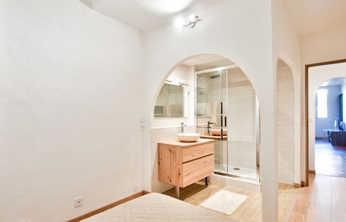 La partie nuit comprend une chambre au calme, une salle d'eau ainsi qu'un WC indépendant.