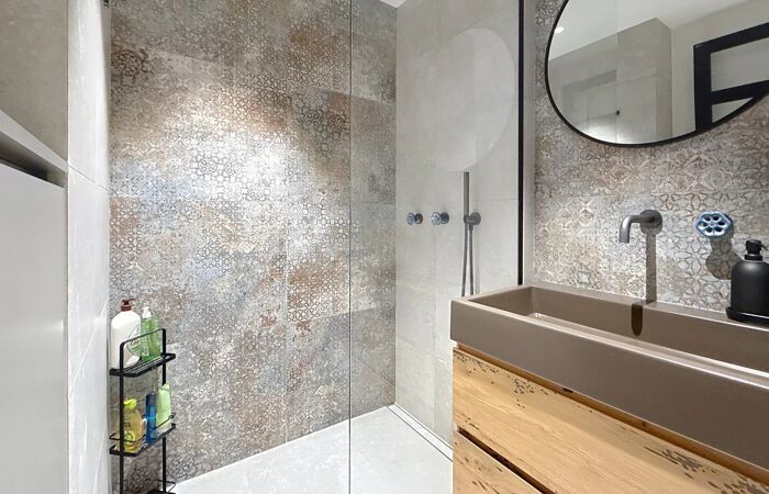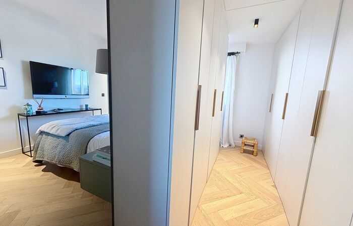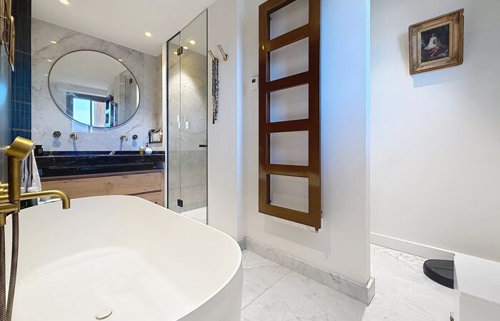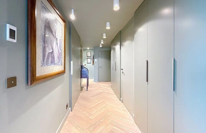 Entièrement rénové par un architecte d’intérieur, l’appartement propose des prestations luxueuses. Il se compose d’un vaste séjour lumineux avec une cuisine américaine entièrement équipée et aménagée de la marque Leicht, d’une suite parentale avec dressing sur mesure et salle de bains comprenant baignoire, douche et WC, d’une chambre avec salle de douche à l’italienne, de deux chambres supplémentaires, d’un WC indépendant avec douche à l’italienne ainsi que de nombreux rangements sur mesure, dont un espace buanderie dédié.