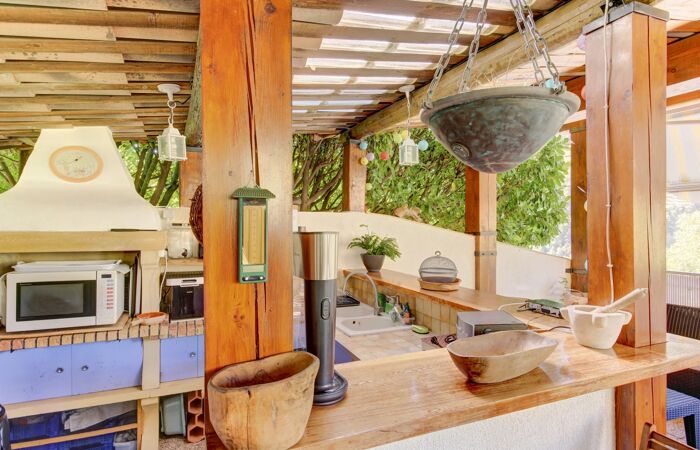 L'extérieur n'est pas en reste puisque vous y trouverez une confortable cuisine d'été avec espace conviviale et tout le nécessaire pour régaler vos familles et amis, un jacuzzi avec gazebo, et une piscine hors sol.
