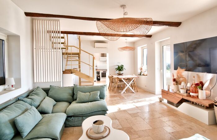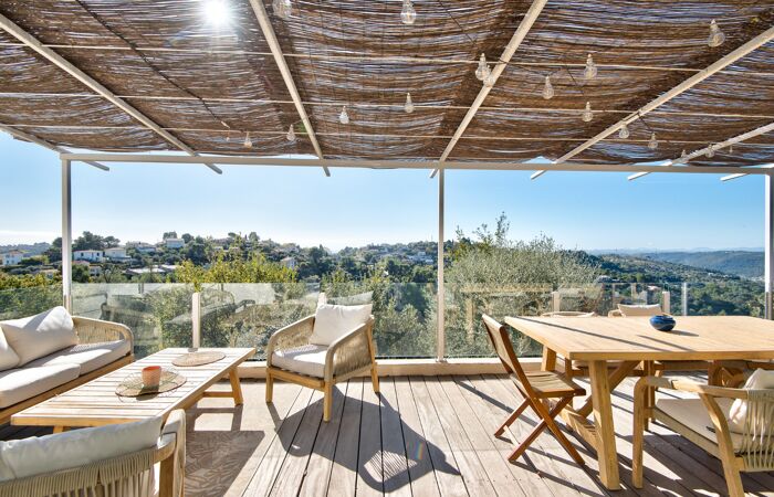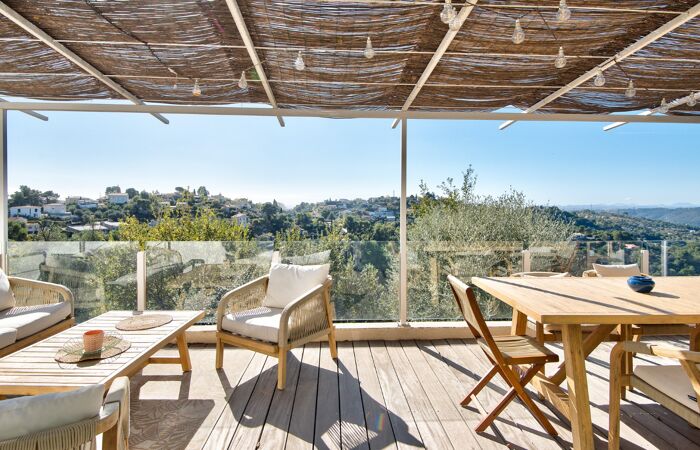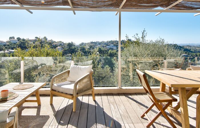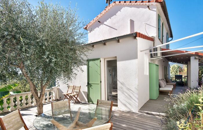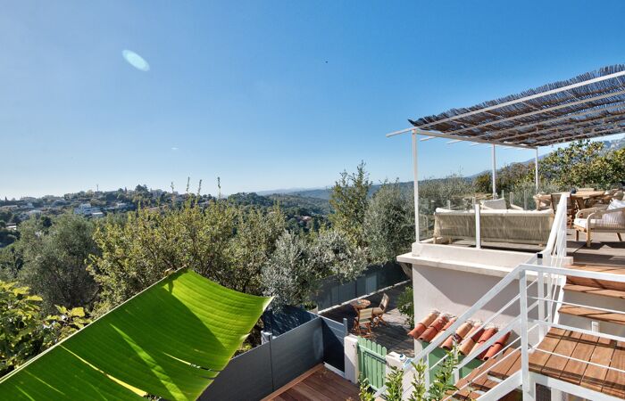 COLOMARS : Maison de 120 m² sur un terrain situé sur les collines niçoise, à Colomars. Au calme absolu et offrant de très belles vues dégagées sur les collines, la maison est en parfait état et a été rénové avec charme. Elle est actuellement composé : au niveau rez de chaussé, un séjour avec cuisine indépendante ouvrant sur une terrasse abritée bénéficiant d'une belle exposition et d'une vue dégagée sur les collines, à l'étage, 2 chambres, une salle d'eau et un WC, au Rez de jardin, la chambre principale avec dressing, bureau et salle d'eau avec WC. De nombreux espaces extérieurs comprenant un jacuzzi, des terrasses, une terrain de boules. Ecoles et commerces à proximité immédiate. La campagne à 20 minutes de la Promenade des Anglais, de l'Aéroport et de l'autoroute.