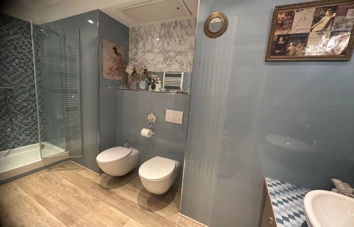 MENTON/BORD DE MER/ANCIEN PALACE/4P EN ETAGE Dans un magnifique ancien Palace de 1912 dans le quartier très prisé du Casino Barrière. Authenticité, charme et élégance définissent ce 4 pièces entièrement rénové par une Artiste et incarne l'élégance et le confort dans un cadre exceptionnel. En exposition Sud-Ouest le séjour lumineux ainsi que les chambres s'ouvrent sur 3 balcons dévoilant des panoramas uniques entre mer et montagne. Cuisine et salle d'eau, au design contemporain, ajoutent une touche de sophistication. La façade de l'immeuble, récemment rénovée, renforce le cachet de cette adresse rare. Ce bien séduira les amoureux de charme, de patrimoine et de douceur de vivre méditerranéenne. Honoraires agence charge vendeur. Charges annuelles 2844euros par an. Nombres de copropriétaires 80 Les informations sur les risques auxquels ce bien est exposé sont disponibles sur le site Géorisques : géorisques.gouv.fr. Pour toutes demandes d'informations et visite, merci de contacter Domitille DEMEURE au +33608589955
