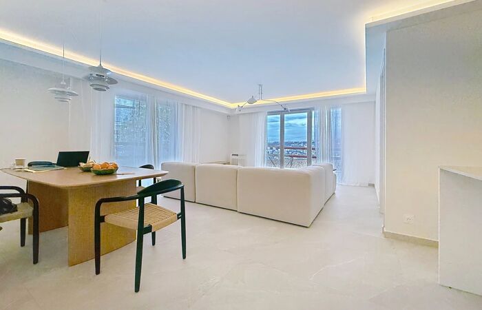 5 PIECES - TERRASSE SUR TOIT AVEC JACUZZI Magnifique 5 pièces de 111 m² avec vue panoramique, deux grandes terrasses, dont une sur toit avec jardin et jacuzzi. L'appartement se compose d'un vaste séjour donnant sur de multiples baies-vitrées, ainsi qu'une cuisine ouverte avec îlot central. 4 chambres, dont une suite parentale sont proposées, chacune avec une salle d'eau, ou salle de bain attenante. L'appartement est vendu meublé. 2 places de parking côte à côte en sous-sol sont incluses. Les informations sur les risques auxquels ce bien est exposé sont disponibles sur le site Géorisques : georisques.gouv.fr Pour toutes demandes d'informations et visite, merci de contacter Hugo DEVILLIERS au +33625013501