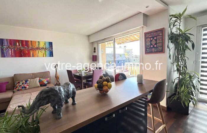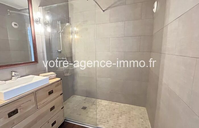 L'appartement qui est situé en rez-de-chaussée sur-élevé, il se compose d'une entrée avec de nombreux rangements, un séjour lumineux avec la cuisine américaine aménagée et équipée, 2 chambres dont une avec sa pièce d'eau, une salle de bains, un toilette séparé, buanderie.