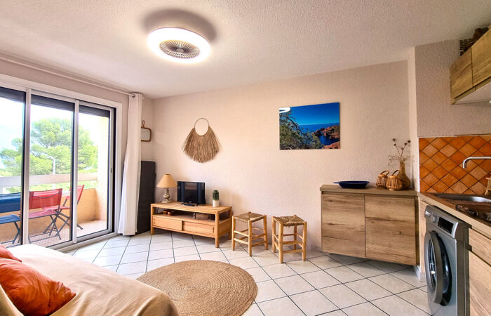 Situé dans une résidence fermée à  quelques pas de la plage du TIKI, ce bel appartement de 2/3 pièces a été complétement rénové il y peu. Il bénéficie d'une belle terrasse offrant une vue sur la mer et sur la verdure environnante.
