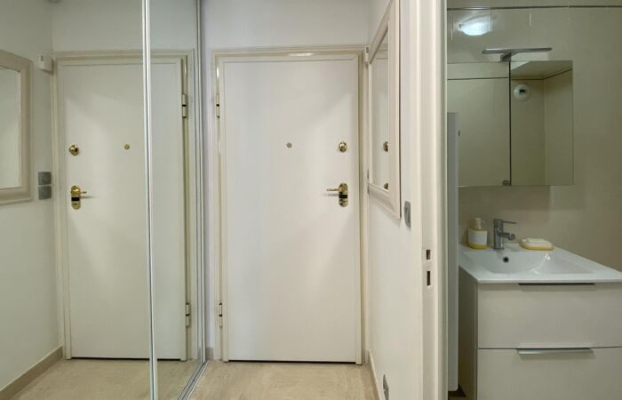 Charmant studio entièrement rénové de 25 m², disponible à la location longue durée, situé au 3ᵉ étage d’un immeuble dans un quartier calme et sécurisé. Il se compose d’une entrée avec rangements, d’une pièce principale lumineuse avec cuisine de standing entièrement aménagée et équipée, et d’une salle de bains avec WC.