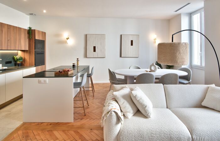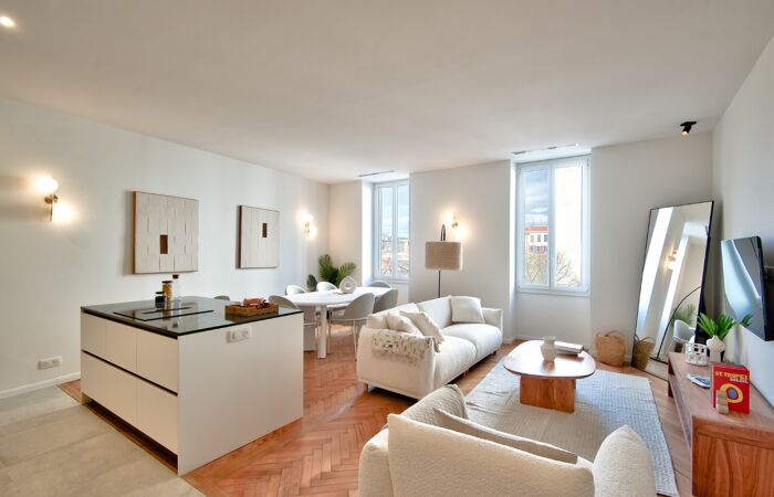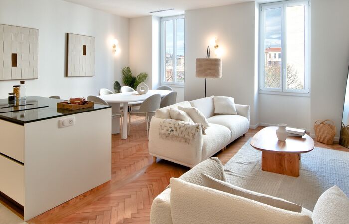 Il s’ouvre sur une agréable pièce de vie de 30 m² avec cuisine ouverte, prolongée par deux terrasses de 18 m² et 10 m². L’espace nuit comprend deux chambres, une salle de bains ainsi qu’un WC indépendant.