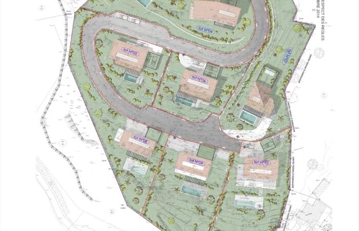 FALICON, terrain vue mer avec permis de construire NICE/FALICON, dans un domaine de grand standing, VUE DOMINANTE MER pour ce terrain de 594m2 avec permis de construire pour une villa d'une surface de plancher de 162m2, surface maximale autorisée de 225m2 (PC modificatif en cours). Garage, piscine.