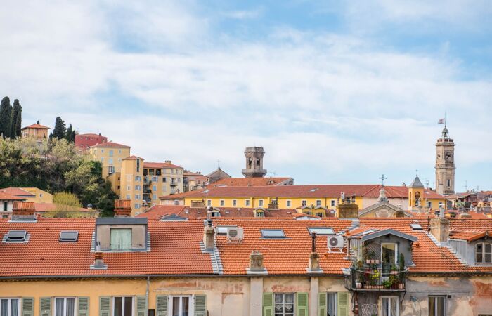 Cet appartement saura vous séduire par ses 3 trois expositions, sa luminosité et la vue offerte sur les toits de Nice et la colline du château.