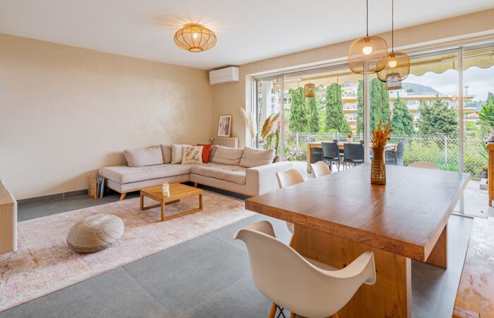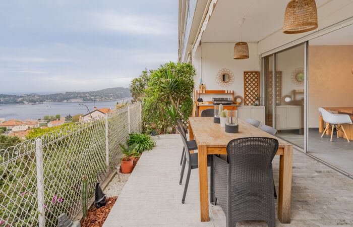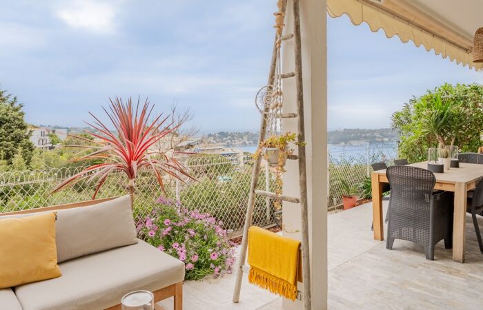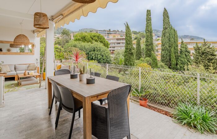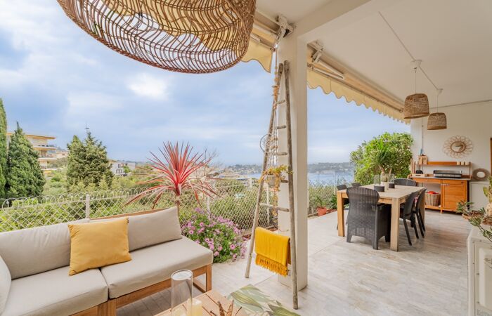 Il s'agit d'un appartement de type 3 pièces d'une surface de 77 m² environ au 1er étage avec une belle vue mer et collines, composé d'une entrée, de 2 chambres, d'une salle de douche avec wc et d'un séjour avec une cuisine ouverte ouvrant sur un balcon et une terrasse.