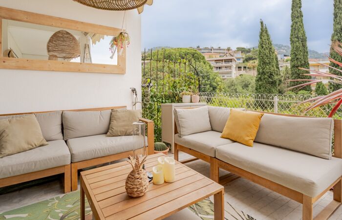 Entrée privative, cheminée, double vitrage, tout à l'égout, exposition Sud/Ouest, vue dégagée mer et collines.