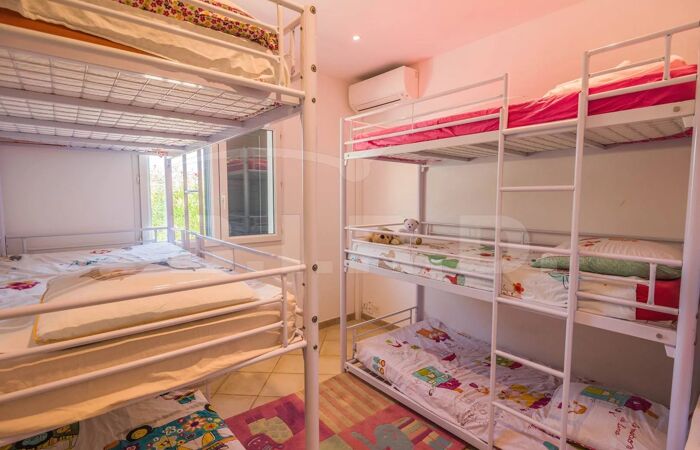Elle se compose de : un vaste séjour/ salle à manger, une cuisine entièrement équipée et aménagée, 4 chambres doubles (160x200cm) (dont 1 avec 2 lits superposés triples), 4 salles de bains/eau. Elle peut accueillir confortablement jusqu'à dix personnes, offrant une intimité et un confort maximum pour tous les invités. Buanderie, Wi-Fi et Climatisation.