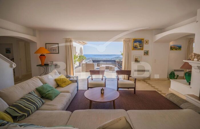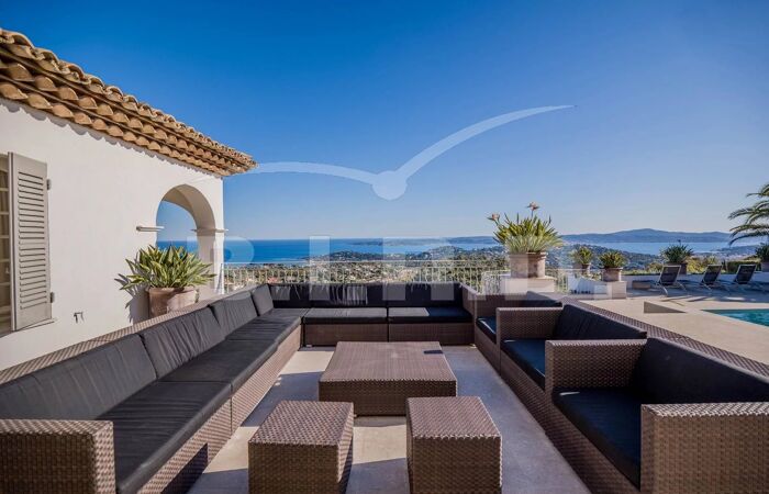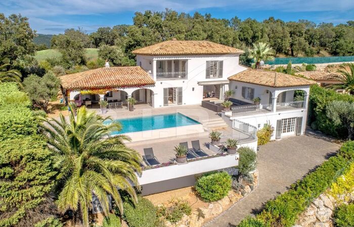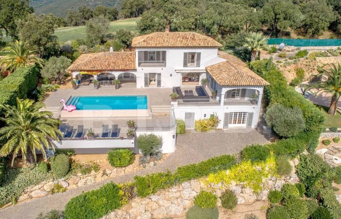 Luxueuse villa avec vue mer panoramique à Sainte-Maxime A Sainte-Maxime, non loin des plages de la Nartelle et du centre, en position dominante, dans le prestigieux domaine du golf, cette magnifique VILLA néo-provençale, bénéficie d'une vue mer exceptionnelle sur toute la baie de Saint-Tropez.