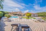 À l'extérieur, vous trouverez une belle terrasse avec sa table à manger et son salon d'été, le tout peut être recouvert avec des stores électriques, plancha et piscine (chauffée en option) idéal pour un bon déjeuner/ diner au bord de la piscine. Grand parking pour de nombreuses voitures et carport.