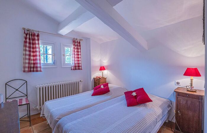 A l'étage, vous trouverez 2 jolies chambres double de style provençal et sa salle d'eau/bains.