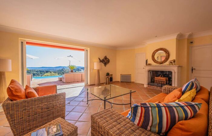 GRIMAUD - VILLA 6 CHAMBRES - VUE MER ET CHATEAU - PISCINE Perchée sur les hauteurs de Grimaud, cette villa de charme vous invite à vivre une expérience unique face à lun des plus beaux panoramas de la Côte dAzur. Depuis sa terrasse, laissez-vous séduire par une vue spectaculaire sur le village de Grimaud, son château, les collines de Gassin, Saint-Tropez et la mer Méditerranée.