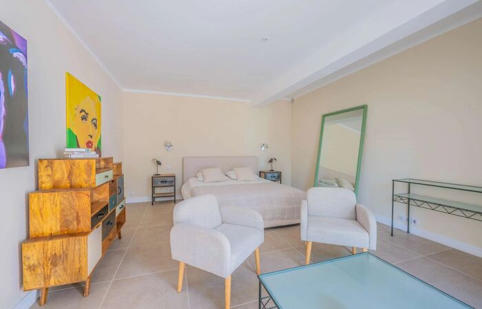 La villa peut accueillir jusquà 12 personnes grâce à ses 5 chambres et son studio indépendant, idéale pour des séjours en famille ou entre amis.