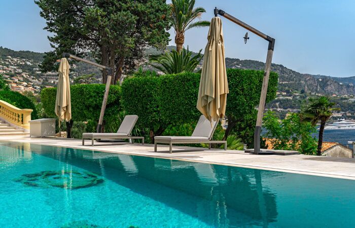Produit très rare sur le marché, cette magnifique villa « Belle Epoque » a été entièrement rénovée en 2016 au plus haut niveau par un architecte italien réputé, Alberto Mariotti. Ce qui rend cette propriété unique est son vaste terrain de 16.500 m² qui se trouve à 3 minutes à pied d'une plage de sable et à seulement 33 mètres au-dessus du niveau de la mer, ce qui est impossible à trouver sur la Côte d'Azur. Cette incroyable propriété appelée « La Rêve d'Azur » appartenait autrefois à un riche promoteur français, Bernard Voisin, qui a construit et possède le port de Villefranche.